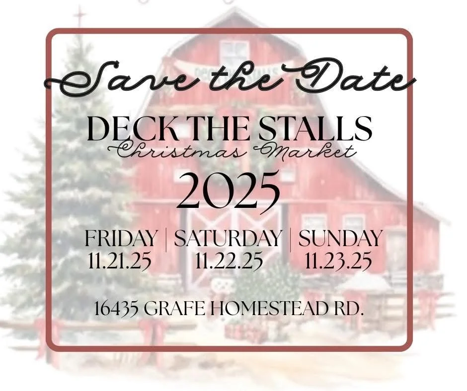 Southern Bread Company will be at the Deck the Stalls Christmas Market Friday, November 21st through Sunday, November 23rd! Look for our booth outside next to the chapel at 16435 Grafe Homestead Rd.